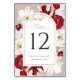 Eine romantische Tischnummer mit rubinfarbenen rote Rosen und sanften weißen Blumen, die den Gästen Eleganz und Stil verleiht.