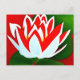 Rot-weiße Lotus-Blume mit grünen Blätter Postkarte