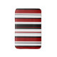 Die Handtücher sind in schwarz, rot und weiß gehalten und mit vertikalen Streifen versehen.