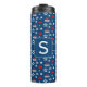 Thermische Trommelaufmachung Sterne und kräuselnfelsenmuster im Rot, im Weiß und im Grau auf blauem Hintergrund. Vervollkommnen Sie für Lockenwickler und kräuselnfans. Fertigen Sie mit Ihrer Initiale besonders an.