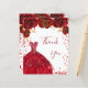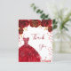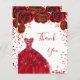 Ein weiblicher und eleganter Geburtstag Dankeschön Karte. Weiß mit roten Imitaten, Glitzer, Glitzern, rote Rosen und rotem Kleid. vorne ein großes handgeschriebenes Skript und den Text: Danke. Zurück: Personalisieren Sie Ihre Dankeschön Notiz und Name. Der Name ist mit einem modernen handgeschriebenen Stilskript geschrieben.