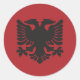 Roter Aufkleber mit schwarzem Albanischer Adler darauf.