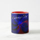 Enjoy this personalize coffee mug with your next latte. The product features a rotating blue accent geometric themed design.