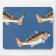 Holen Sie Ihre Liebe der Fische und des Sportfischens zu Ihrem Arbeitsplatz mit diesem mousepad, das einen künstlerischen Rotbarsch kennzeichnet (rote Trommel) und zwei Fisch-Schwänze mit der unterscheidenden Rotbarschmarkierung. Hier dargestellt mit einem tiefen blauen Hintergrund.