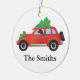 Rotbein-Hund Fahren eines Weihnachtswagens Keramik Ornament