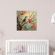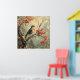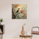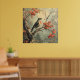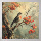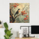 Schöne Natur Vintage Lithographie einer Rotbrust auf einem Baumzweig mit rosa Blume und roten Beeren, sanfte, zarte Farben im japanischen Stil