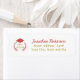 Rücksende-Adresseetiketten für Ihre Abschlussanzeigen und Dankeskarten mit individuellem Logo in Rot. Enthält ein Bild einer roten Abschlussmütze und Lorbeer mit editierbarem Abschlussjahr und Ihrer Adresse. Blau, schwarz und andere Schulfarben sind ebenfalls in diesem gleichen Design erhältlich.