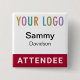 Mit Ihrem Event-Logo, Ihrem Teilnehmernamen oder einem anderen benutzerdefinierten Text personalisieren Sie unser Abzeichen für die Teilnehmer einfach. Es hängt mit einem sicheren Button zurück. Konzipiert in dunkelrot und anderen Farben (alle Farben sind anpassbar). Unsere quadratischen Tasten sind 2 Zoll x 2 Zoll. Hergestellt in den USA. Keine Mindestbestellmenge und keine Einrichtungsgebühr.