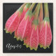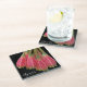 Schützen Sie Ihren Tisch vor Wasserzeichen und Flecken mit dieser dekorativen, gläsernen Getränkekappe, die ein Foto der roten, tubulären Blume einer Agapetes-Strauchart auf einem kontrastierenden, schwarzen Hintergrund zeigt. Ein atemberaubendes Blumendesign!
