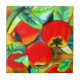 mit originellem Kunstdesign aus Aquarellmalerei mit saftigen, roten Äpfeln, die auf den Bäumen des Obstgartens hängen. Hellrotes und gelbliches Fruchtdesign, das den farbigen Blätter in Kalkgrün gegenübersteht.