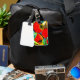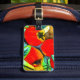 mit originellem Kunstdesign aus Aquarellmalerei mit saftigen, roten Äpfeln, die auf den Bäumen des Obstgartens hängen. Hellrotes und gelbliches Fruchtdesign, das den farbigen Blätter in Kalkgrün gegenübersteht. Dieses Gepäckanhänger kann so angepasst werden, dass es Ihre persönlichen Daten auf der Rückseite enthält.