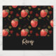Fügen Sie Ihren Namen auf diesem roten Apfel und Blätter Muster auf schwarzem Hintergrund.
