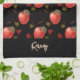 Fügen Sie Ihren Namen auf diesem roten Apfel und Blätter Muster auf schwarzem Hintergrund.
