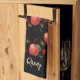 Rote Äpfel und Blätter auf schwarz Geschirrtuch