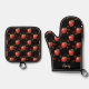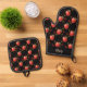Rote Äpfel und Blätter auf schwarz Ofenhandschuh & Topflappen-Set