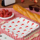 Rote Ballons mit bunten Konfetti-Mustern Pappteller