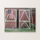 Antike rote Barenttore mit amerikanischer Flagge und einem alten Ladder 10" x 14" Foto Puzzle.