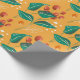 Rote Beere und grüne Blätter auf gelbem Muster Geschenkpapier