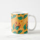 Rote Beere und grüne Blätter auf gelbem Hintergrund Coffee Tasse. Abstraktes botanisches Blumenmuster.