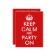 Anpassbare Textbereiche auf einer rot-weißen Parodie "Behalt Calm and Party On" für eine Geburtstagsparty.