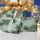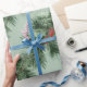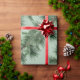 Ein elegantes und raffiniertes Urlaubspapier mit weißen Kiefern und grünen Fichtenbäumen-Garnelen mit roten Ilex-Beeren auf der Diagonale vor einem schluchgrünen Hintergrund.