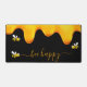 Ein schicker schwarzer Hintergrund mit goldtropfendem Honig. Der Text: Bee Happy mit einem goldenen handgeschriebenen Stil Skript mit Swashes.