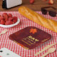 Rote Blätter essen Getränke und seien Sie dankbar Pappteller