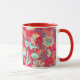 ROTE BLAUE WEISSE BLUME TULIPS, BLÄTTER BLURAL TASSE