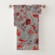 Rote Blume auf Dunkelgrau, Rote Pfeffer Blumendruc Badhandtuch Set