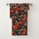 Rote Blume auf schwarz Badhandtuch Set