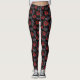Rote Blume auf schwarzem Hintergrund mit goldenen Figuren.