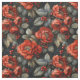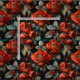 Rote Blume und Beeren mit grauen Blätter auf schwarzem Hintergrund.