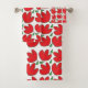 Rote Blume Blumenmuster Badetuch Set. Abstrakte rote Blume grün Blätter Blumenmuster.