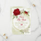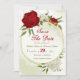 Schöne Save the Date-Karte mit rot-weißen Blume und grünen Blätter auf einem eleganten geometrischen Rahmen aus Gold Die Golddetails werden simuliert. FÜR WEITERE PRODUKTE klicken Sie auf die Sammlung oben oder kontaktieren Sie mich