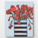 Rote Blume mit gestreifter Vase Fine Art Fotoplatte