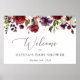 Fügen Sie Ihrer Babydusche mit diesen stilvollen und unvergesslichen Party eine persönliche Touch hinzu! Das Design ist bordeauxrot, rot und lila, Aquarellfarben, Blume und Grün auf weißem Hintergrund.
