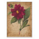 Eine Vintage Kunst einer roten Blume gegen eine weiche Bräune mit einem antiken Buchstaben.