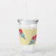 Rote Blume und grüne Blätter auf braun Acryltrinkbecher