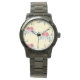 Rote Blume und grüne Blätter auf braun Armbanduhr