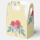 Rote Blume und grüne Blätter auf braun Geschenkschachtel