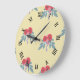 Rote Blume und grüne Blätter auf braun Große Wanduhr