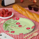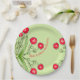 Rote Blüte mit grünem Papierschild Pappteller