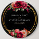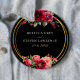 Eleganter, dunkelroter Bordeaux- und schwarzer Hochzeitsknopf mit schönen Blume und grünen Blätter. Eine bezaubernde Mischung aus Eleganz und gotischem Charme. Diese wunderschönen Einladungen sind in schwarz und rot gehalten. Die Kalligraphie ist elegant und schick und lässt sich leicht anpassen. Romantische und moderne blumengeschmückte Hochzeitsfeiern mit klassischen Farben, die nie aus dem Stil verschwinden.