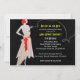 Vintage Illustration in voller Länge einer modern gekleideten Prallplatte stehend mit einer Hand auf ihrem angesagten und einer Zigarette in der anderen Hand. Ein Strom des Rauches von der Zigarette bildet ein Kurven und verdreht sich, dekorative Linie. Unsere Zwanzigerjahre Prallplatten-Thema- oder Jazzthema-Party Einladung kann zu jedem möglichem Ereignis besonders angefertigt werden, ob es ein Geburtstags-Party oder UnternehmensParty ist. Wählen Sie einfach Ihre eigenen Schriftart syles.