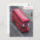 Eine Luftaufnahme eines roten Londoner Busses auf einer Postkarte.