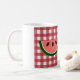 Dieses SpaßAusrüstungsbeschreibungen ein rotes kariertes Tischdeckemuster und eine Scheibe der Wassermelone. Um zu personifizieren, klicken Sie an besonders anfertigen es Knopf.