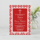 Rote Damaskus Kreuztaufe, Weihnachten oder Erste Heilige Kommunion Einladungen. Diese Einladungen können für jedes heilige Ereignis angepasst werden, inklusive Bekundungen, Christenings, Kommunionen, Taufen und vieles mehr. Fügen Sie Ihre benutzerdefinierte Formulierung mit dem Abschnitt "Diese Designvorlage bearbeiten" hinzu oder klicken Sie auf die blaue Schaltfläche "Anpassen", um den Schriftart und die Farbe zu ändern, oder um ein Foto oder eine zusätzliche Formulierung auf der Rückseite der Einladung hinzuzufügen.