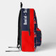 Hellrotes Puffdampf trainiert Jungs Rucksack. Personalisieren Sie mit dem Namen Ihres Kindes, perfekt für Bibliothek oder Schule. Derzeit liest Daniel und Daniel auf Kesselplatte plus Daniel - Super Ferroequinologe entlang der oberen Klappe. Teil der grafischen Dampffahrt für Kinder. Die Hintergrundfarbe kann auch auf Ihre eigene Farbwahl geändert werden, die derzeit in dunkelblau angezeigt wird. Ein perfektes Geschenk für Jungen, die zur Schule oder als Geschenk an einen Fan von Eisenbahn- oder Eisenbahn-Transport mitnehmen. Original Dampfzug Grafik und Design von Sarah Trett exklusiv für www.mylittleeden.com auf zazzle.