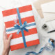 Mutige breite rote und weiße deckchair Streifen auf den Zuhauseeinzelteilen, zum der Erinnerungen der Küste zu erwähnen.
