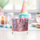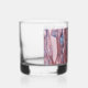 Whiskey Glas, das das Foto von den bunten Mustern einer Platte aus rotem Dolomit Mineral Stein zeigt. Auf einer Glasseite gedruckte Bilder. Bestellen Sie allein oder in Sets von zwei oder mehr für die Unterhaltung Ihrer Gäste. Ein tolles Geschenk für den Rock- und Mineralsammler!